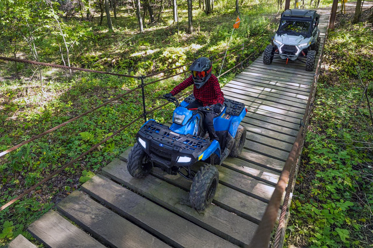 Sportsman 110 je ideální pro seznámení mladých jezdců s jízdou v offroadu. Je určen pro děti od 10 let a pod dohledem dospělé osoby. Je vybaven všemi důležitými bezpečnostními prvky včetně nastavitelného omezovače rychlosti, bubnových brzd, exkluzivní bezpečnostní výbavy a LED světel.